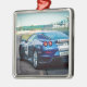 Blue Race Car Silbernes Ornament