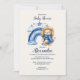 Dieses skurrile Babyduschdesign besticht durch einen handbemalten Löwen in einem Winterschal neben einem zauberhaft blauen Regenbogen und schwebenden Sternen. Die traumhaften Aquarellelemente und die tiefen Marinestöne schaffen ein sanftes und fröhliches Ambiente - ideal, um einen kleinen Jungen mit einer Touch von gemütlichem Urlaubscharakter zu feiern.