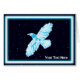 Ein einfaches, leuchtendes, blau-weiß-zeiliges Bild eines Raven (Corvus corax) auf einem sternenförmigen Hintergrund. Fügen Sie Ihren eigenen Text hinzu.