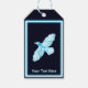 Ein einfaches, leuchtendes, blau-weiß-zeiliges Bild eines Raven (Corvus corax) auf einem sternenförmigen Hintergrund. Fügen Sie Ihren eigenen Text sowohl vorne als auch hinten hinzu.