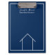 Diese moderne Realtor-Tasche-Zwischenablage ist einfach und subtil mit Ihrem Monogramm und Firmennamen. Die schick minimalistisch-blau-weiße Linie zeichne ein Haus. Behalt deine Zuhause-Listingnotizen und die Namen deiner Homebuyer zu jeder Zeit mit dir oder nutze diese, um deinen Kunden die Unterlagen auszufüllen.