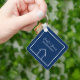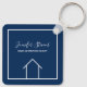 Dieser moderne Schlüsselanhänger ist mit dem Namen Ihres Immobilienunternehmens unter dem Namen des Agenten in schicke Typografie gefertigt. Diese minimalistisch blaue und weiße quadratische Schlüsselkette weist eine einfache Linie auf, die von einem Haus zeichne. Zeitgenössisches Geschenk für einen Agent, der Ihnen beim Kauf einer Zuhause behilflich ist.