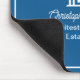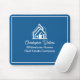 This professional realtor mousepad is custom made with your real estate company name under the modern cursive script for an open house. These elegant custom blue realty business promotional items feature a house logo image for home builder or realty agent company marketing.