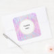 Vielen Dank für die Aufkleber mit einem abstrakten Hintergrundmuster. Rosa lila und blaue Aquarellfarben bilden dieses künstlerische Design, das vertikale rechteckige Formen auf einem weichen, motlisierten Hintergrund aufweist. Ein Kreis, der oben mit einem Imitat mit einer goldenen Folienabdeckung überlagert ist, der personalisierte Text im Inneren.