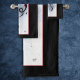 Schwarzer Stammdrache mit einem blauen grauen Hintergrund mit kleinen roten Blume und einer roten Grenze.