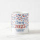Anpassbare Fotovorlagenklasse 2025 Abschluss Tasse mit blauen und roten Konfetti Muster.