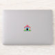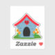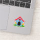 Blau mit rotem Baumhaus mit gelben Blumen und grünem Grasaufkleber