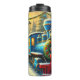 Blue Red Festive Train Ornament Forest Thermosbecher