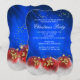 Blue Red Gold Weihnachtsfeier Einladung. Eleganter goldgelber Stachelbaum mit weißem Schneegolz, glänzender Glitzer. Bitte beachten Sie: Alle flachen Bilder!