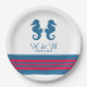 Elegante und klassische Nautical Seepferd Wedding Paper Teller mit einem Paar einfacher Seepferde und eine Reihe von Streifen in dunkelblau und rot. Diese Teller zum Thema Wassersport können leicht an Ihre Hochzeitsdetails angepasst werden. Klicken Sie für weitere Anpassungsoptionen auf die Schaltfläche Anpassen.