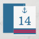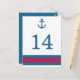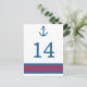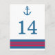 Elegante und klassische Nautical Anchor Tischnummer Postcard mit einem einfachen Bootanker und einer Reihe von Streifen in dunkelblau und rot. Diese Hochzeitskarte zum Thema Wasserstrand lässt sich leicht mit Ihren Hochzeitsdetails abstimmen. Klicken Sie für weitere Anpassungsoptionen auf die Schaltfläche Anpassen.