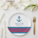 Elegante und klassische Nautical Anchor Wedding Paper Teller mit einem einfachen Bootanker und einer Reihe von Streifen in dunkelblau und rot. Diese Teller zum Thema Wassersport können leicht an Ihre Hochzeitsdetails angepasst werden. Klicken Sie für weitere Anpassungsoptionen auf die Schaltfläche Anpassen.