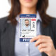 Medium sized 3"x5" vertical press ID with blue and red as accent colors. Add photo, your news publication logo, the reporter's name, title, the badge ID number and more. This Press ID is in a slightly larger size for easy visibility. Add your QR code to the back as well.