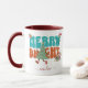 Retro Groovy Typografie personalisierbare Skriptkaffeemaschine Tasse. Das Design enthält den Text "Merry Bright" in blau und braun Groovy Typografie mit kawai-themed Elemente wie Weihnachtsbaum, bunten Santa und Sternen. Der Name kann leicht angepasst werden. Macht das personalisiertste Geschenk für sich selbst, Ihre Freunde, Familienmitglieder und sogar Nachbarn. Wir haben mehr als 45 Weihnachtsdesigns in Retro-, Aquarell- und lustigen typografisch-basierten Themen in unserer Sammlung, die Sie definitiv Liebe werden. Frohe Weihnachten!