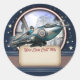 Blue Retro Rocket Name Aufkleber