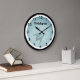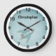 Die runde Wanduhr dieses Kindes ist mit einem niedlichen Raumschiff auf blauem Hintergrund mit großen, fett und leicht lesbaren Ziffern gestaltet. Bereit für Ihre Personalisierung mit seinem Namen.
