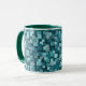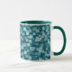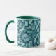 Blau, Aqua und aquamarine Plätze schmücken diese Kaffee-Tasse im Retro-Stil. Das Design stammt aus der Originalkunst.