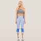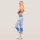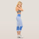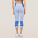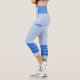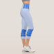 Two-tone design with retro style stripes on the lower legs. Horizontal lines in solid blue on a light blue background for your sporty Capri leggings. Add a personal touch to your outfit with your name on the left side of these high-waisted athleisure leggings.