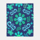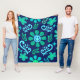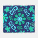 Blue Retro Style Floral and Sun Symbol Pattern Fleecedecke