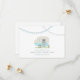 Eine Hochzeit speichert das Datum mit einer Abbildung eines Vintagen inspirierten blauen Anhängers auf grünem Gras geparkt. Der Trailer hat eine Fensterbox mit farbigen Gängen und schwarzen mit Augen Sushans. Oben blaue und graue Graubündel. Suchen Sie nach passenden Hochzeitseinladungen und mehr in Jill's Paperie.