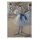 Blue Ribbon Dancer. Edgar Degas. Niedliches Portrait in Pastellfarben, weiß-braun. Ballerinas in weißen Röcken gehen in den Unterricht. Die Mädchen richten ihre Kleider aus.Reproduktion von berühmten Kunstwerken Bilder im öffentlichen Bereich.