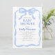 Feiern Sie die bevorstehende Ankunft Ihres Babys mit der Blue Ribbon Watercolor Bow Baby Shower Einladung! Mit einem handbemalten blauen Bogen und sanften Wasserfarben-Details strahlt diese Einladung zeitlose Eleganz und Charme aus. Delikate Schriftart und eine ruhige Farbpalette machen es zu einer idealen Wahl, um die Mutter zu ehren. Egal ob Sie eine gemütliche Ansammlung oder ein großes Fest veranstalten, diese wunderschön gestaltete Einladung Set die Bühne für eine herzliche und unvergessliche Babydusche.