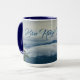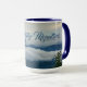 Die Tasse mit einem Berggipfel inmitten der Wolken in blauen und anpassbaren Farbtönen bietet einen Ausblick auf das Blaue Ridge Gebirge in Wolken. Personalisieren mit Initialen. Das ist die ursprüngliche Landschaftsfotografie von North Carolina von JLW_FOTOGRAFIE.
