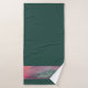 Eine ruhige Gebirgslandschaft mit rosa Himmel. Schöne Grüntöne und lila Bergketten zieren die Seite. Stationery- und Wohngestaltung-Objekte umarmen ihr Design.