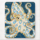 Blue Ring Octopus Indigo Vintag Map Nautic Mousepad