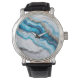 Durch das Bild fließen Wellen von lebhaftem Blau und Wasser, durchzogen von schimmernden goldenen Akzenten. Die Farben verwirren und vermischen sich und geben ein Gefühl von Bewegung und Eleganz.