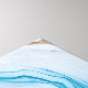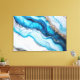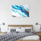 Durch das Bild fließen Wellen von lebhaftem Blau und Wasser, durchzogen von schimmernden goldenen Akzenten. Die Farben verwirren und vermischen sich und geben ein Gefühl von Bewegung und Eleganz.