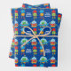 Diese coolen Roboter-Musterverpackungsblätter zeigen unterhaltsame Roboter in Blau, Grün und Rot mit Ihrer individuellen Geburtstagsbotschaft für einen kleinen Jungen. Geschenkpackung für niedliche Kinder.