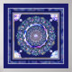 Zeichn eines Buntglasfensters aus einer alten europäischen Kirche: ein Rose-Fenster mit Touchs in verschiedenen Farbtönen, darunter Blautönen, auf marinebasischem Hintergrund. Einlagerung von blauen Nashornsteinen. Dieses Motiv ist auch in Kardinal Rot in meiner "Kardinal Rosass" Kollektion erhältlich. (keine A.I.)