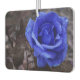 Dies ist ein Bild einer blauen Rose auf einem Rechteck Air Freshener für ein Automobil.