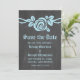 Blue Rose Chalkboard Save the Date einladen