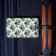 A seamless blue rose floral pattern featuring dark and light blue roses with green leaves.