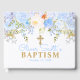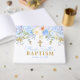 Die hübschen blauen Rose-Blume schmücken das Titelbild dieses Taufers. Geleitet von einem vergoldeten Imitat Glitzer Kreuz und Blockschrift. Ideal für einen Taufe-Empfang.