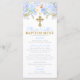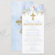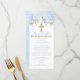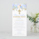Eine blauer Blumengartenwand schmückt ein modernes 3-Gänge-Menü mit Auswahl an Vorspeisen und Nachspeisen. Eine elegante Speisekarte, die mit einem Kreuz des Glitzer auf der Rückseite geschmückt ist, lädt zum Set auf den Tischen ein, bevor die Gäste die Abendkurse gedreht haben. Erhältlich auf einer traditionellen 4"x9" eleganten Karte. Einladungen, Weinetiketten und andere Artikel aus dieser Kollektion finden Sie in unserem Shop.
