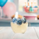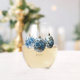 Hier ist ein Bild mit drei Weihnachtsschmuck. Jedes Ornament hat eine andere blaue Rose. Auf der Rückseite liest der Text, Frohe Festtage oder Sie können Ihre eigene Nachricht hinzufügen.