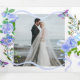 Blue Rose Ribbon Monogram Foto Hochzeitseinladung Dreifach Gefaltete Ankündigung
