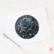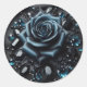 Blue Rose with Jewels on Black Fabric Runder Aufkleber