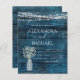 Rustikales Bauernhaus String Lights und Jar of Gipskraut Wedding Invitations on Wood background - beinhaltet eine schöne und elegante Schrift Typografie mit modernem Country Farm House Sparkle für die besondere Hochzeitsfeier.