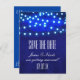 Blue Rustic Night String Lights Rett Date Postcard Ankündigungspostkarte