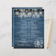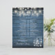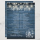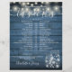 Diese stilvolle rustikale Hochzeitszeitlinie mit hübschen Saitenlichtern und Maurerkirschen kann mit Ihren Hochzeitsdetails in schicken weißen Schriftzeichen auf blauem Holzpaneelhintergrund personalisiert werden. Entwickelt von Thisisnotme©