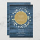 Blue Rustic Wood Laurel Garland Gold Wedding Einladung