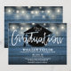 Blue Rustic Wood String Lights Graduation Party Einladung