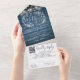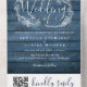 Blue Rustic Wood String Lights QR Code Wedding All In One Einladung