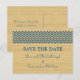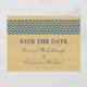 Moderne und trendige rustikale Zickzack Save the Date Postkarte mit einem kunstbedruckten holzkörnigen Texturhintergrund und einem zackigen Zackenmuster aus dunkelblauen Zickzack Streifen. Dieses Design ist perfekt für die Ankündigung einer rustikalen und dennoch eleganten Hochzeit. Einfach anpassen, einfach Ihre Hochzeitsdetails hinzufügen. Klicken Sie auf "Anpassen", um weitere Personalisierungsoptionen zu erhalten.