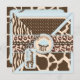 Blue Safari Animal Print & Cupcake First Einladung