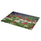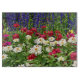 Auf diesem großen, dekorativen Glasschneidebrett, das das Foto eines farbenfrohen Sommergarten von Blue Salvia und Rot-Weiß Zinnias zeigt, würfeln und würzen Sie Ihr Essen sicher. Ein schönes, blumengeschmücktes Design!